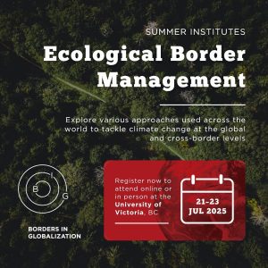 BIG_Lab is once again proud to partner with the POLIS Water Sustainability Project to offer the Summer Institute Ecological Border Management. Co-led by POLIS’ Oliver M. Brandes, this University of Victoria certified course will deepen your knowledge of the various approaches used around the world to tackle climate change at the global and cross-border levels. Over three days, sessions will be facilitated by professionals from organizations that manage watersheds, peace parks, and nature reserves from all continents, as well as leading academics in the fields of border studies that are studying how states and local/regional communities are adapting to those changes in the era of the Anthropocene.